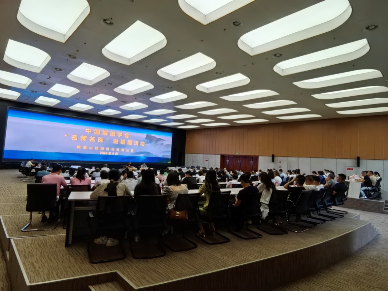 第二版块在峨眉山旅游股份有限公司会议厅进行。首先进行了简短的开幕式,由公司负责人苏真武主持并致欢迎词,周德山教授简介了此次活动的目的和特色,接下来由姚忠祥教授就《糖尿病的发生与防治》、文灿副教授就《外伤的应急处置》、李红丽教授就《直面焦虑情绪本质,探寻缓解措施》等专题做了讲座,共150余人参与学习和交流。