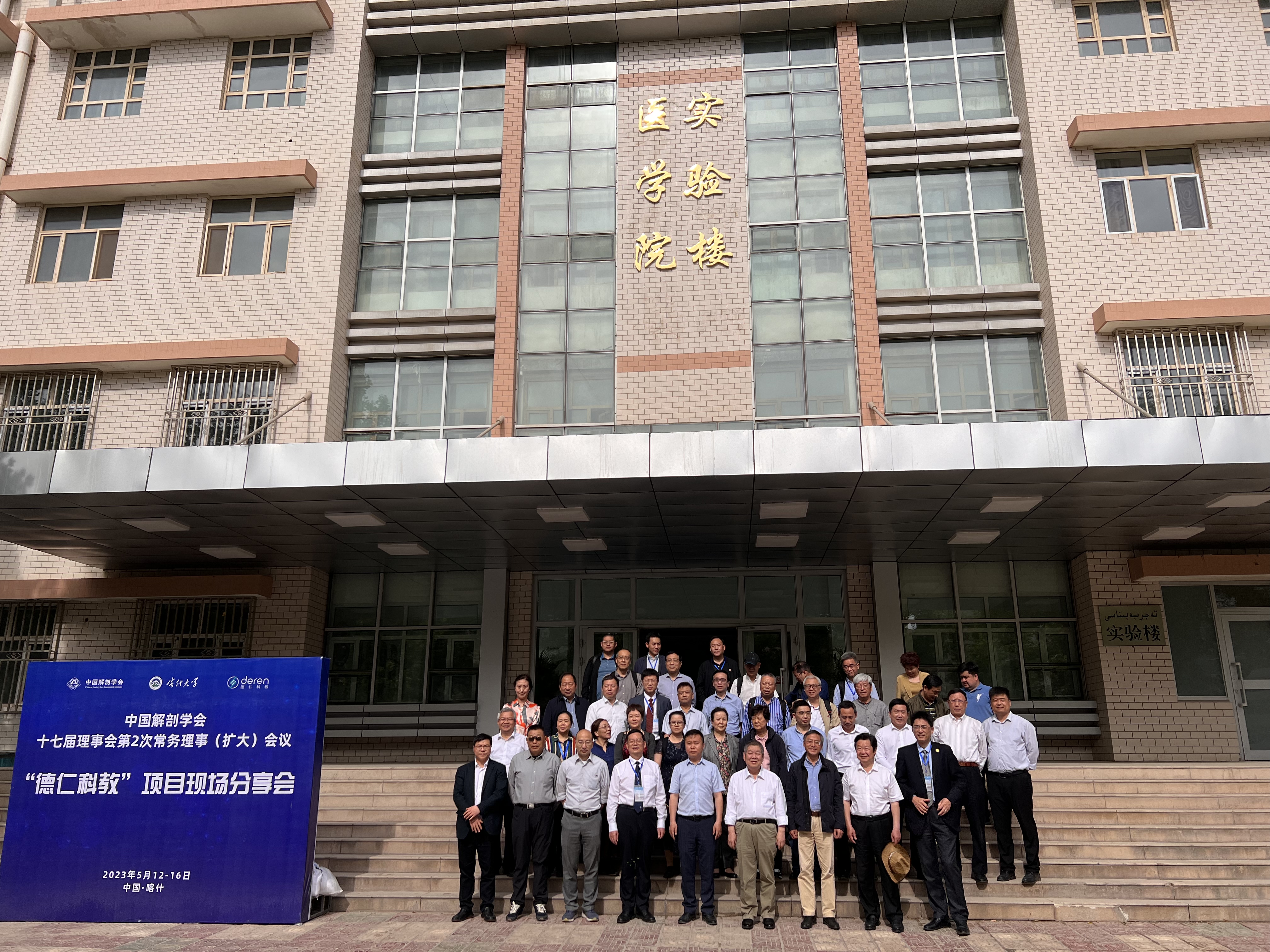 2023年5月13日,中国解剖学第17届理事会第2次常务理事(扩大)会议在新疆喀什大学召开。喀什大学冯冠军副校长、喀什大学医学院马志邦书记、崔晓军院长列席了本次会议,共计49人参会。